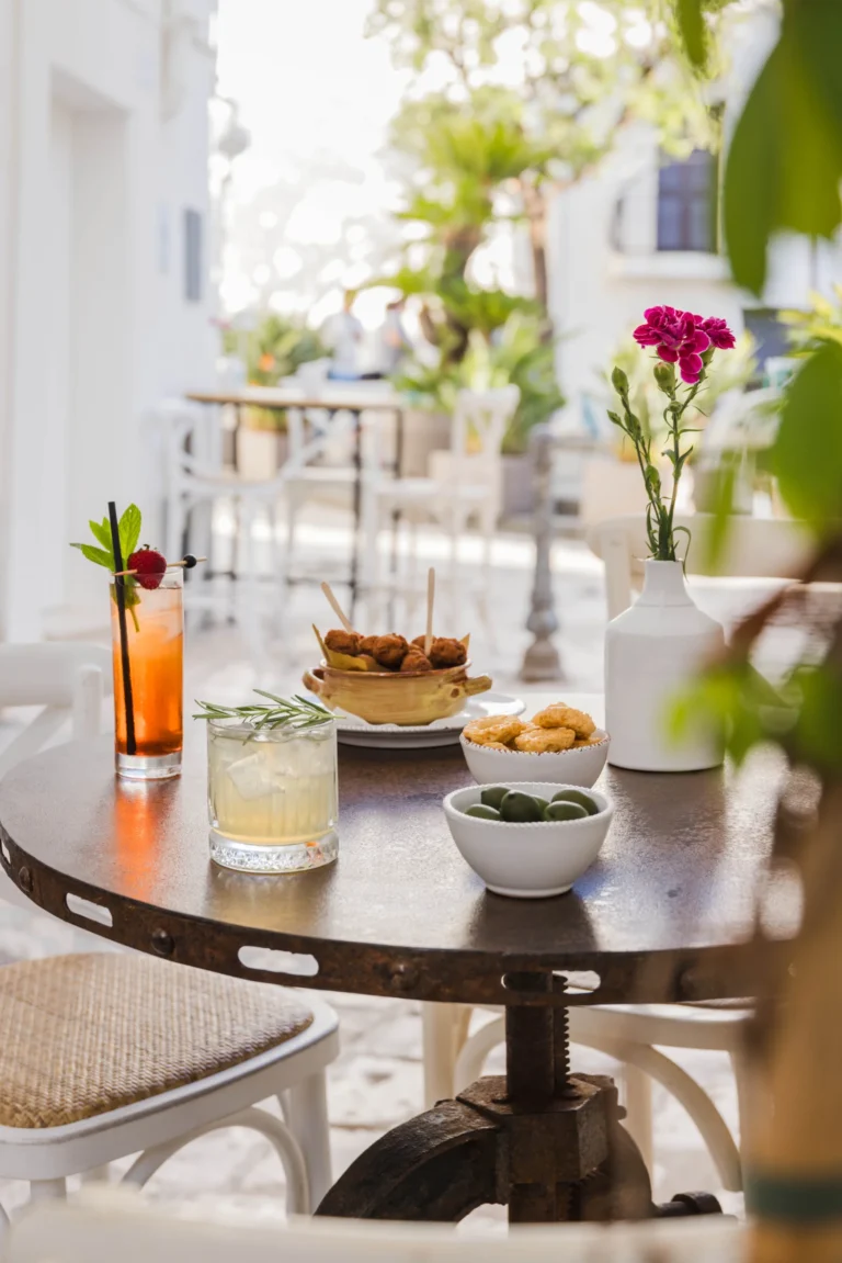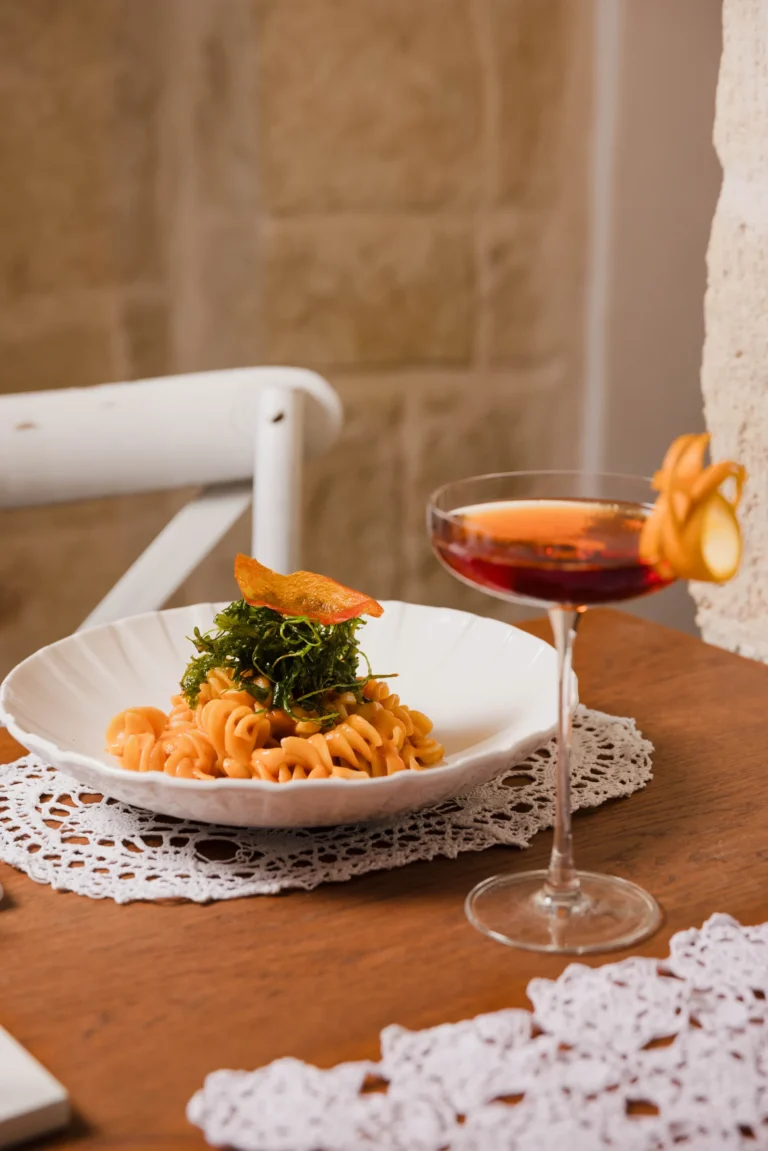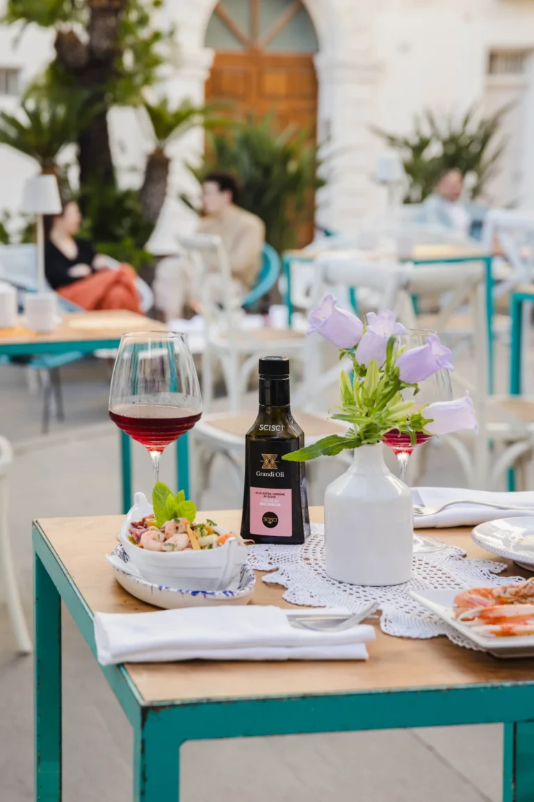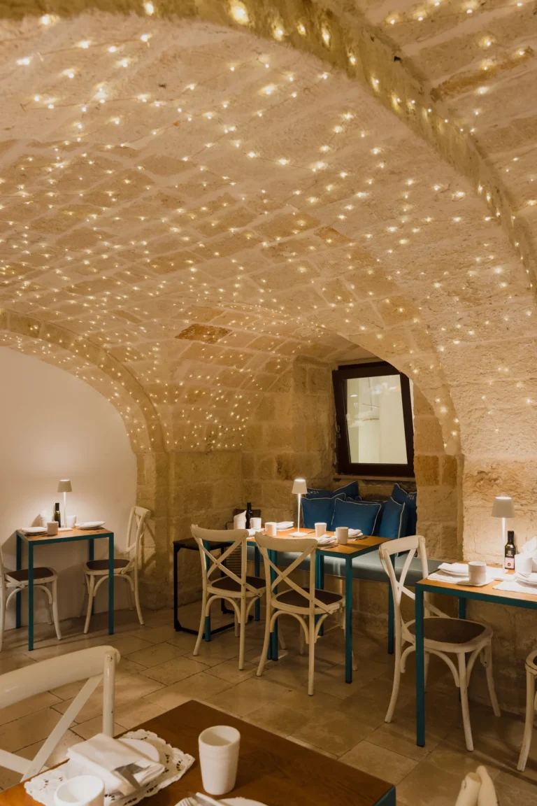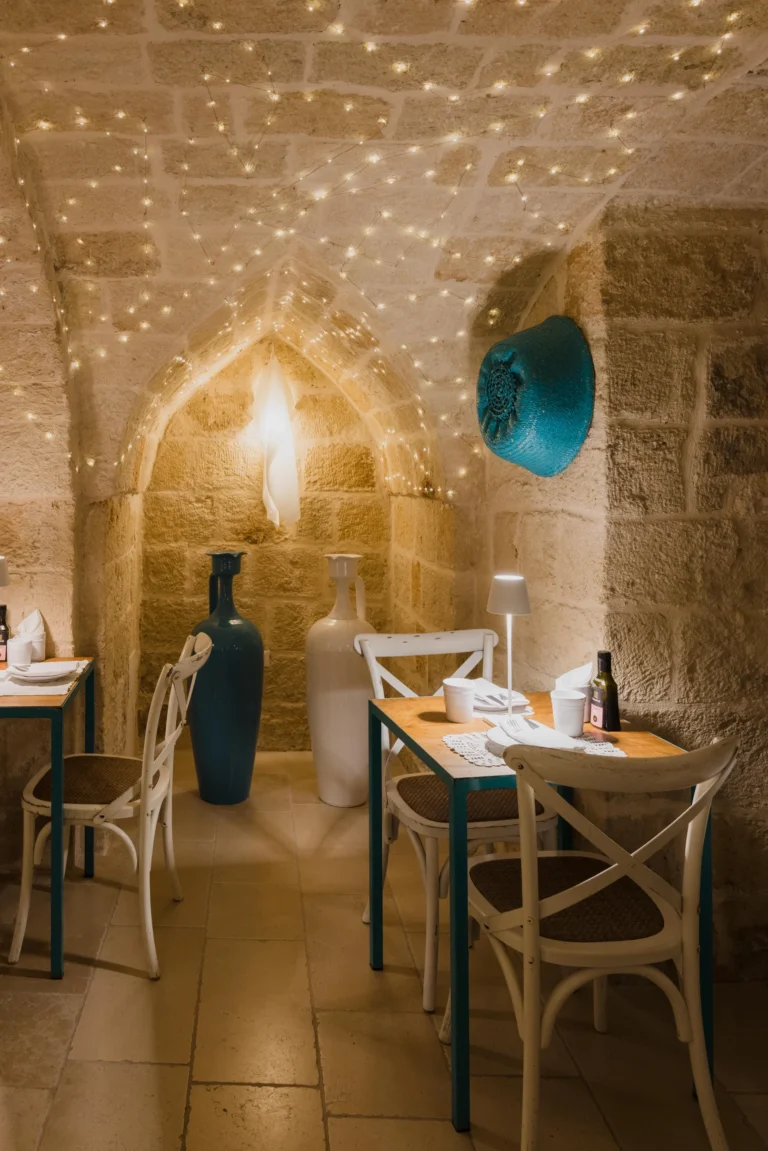 La nostra cucina presenta il meglio della cucina pugliese, con un menu accuratamente studiato che comprende piatti tradizionali e aperitivi in stile pugliese che evocano i sapori della regione. Ogni piatto è preparato con ingredienti freschi e di stagione e di provenienza locale. A completare l’esperienza, il nostro Bar à Vin offre una vasta selezione di vini locali e internazionali. Per un’esperienza culinaria davvero unica, il nostro team propone abbinamenti di vini su misura per ogni piatto, assicurando che ogni sorso esalti i sapori del vostro pasto. Inoltre, realizziamo cocktail classici e signature ispirati alla nostra amata terra, mescolando erbe e aromi locali in drink creativi, per catturare l’essenza della Puglia in ogni sorso.