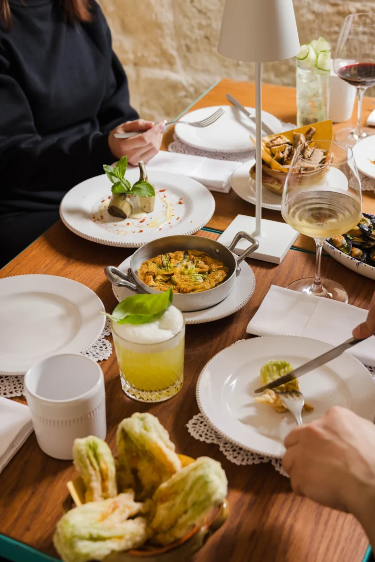 La nostra cucina fa rivivere i sapori della cucina pugliese attraverso menu stagionali con piatti tradizionali e aperitivi, preparati con ingredienti freschi e locali. N24 Bar à Vin offre un’accurata selezione di vini locali e internazionali, con abbinamenti studiati per esaltare la vostra cena. Inoltre, i nostri mixologist realizzano cocktail unici ispirati alla Puglia, utilizzando erbe mediterranee ed ingredienti locali per catturare l’essenza di questa regione in ogni sorso.